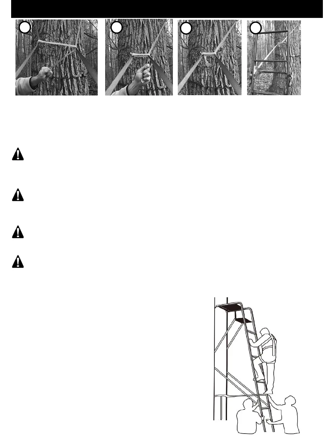 ratchet straps to secure the top of the stand to the tree. DO NOT sit or stand on the standing