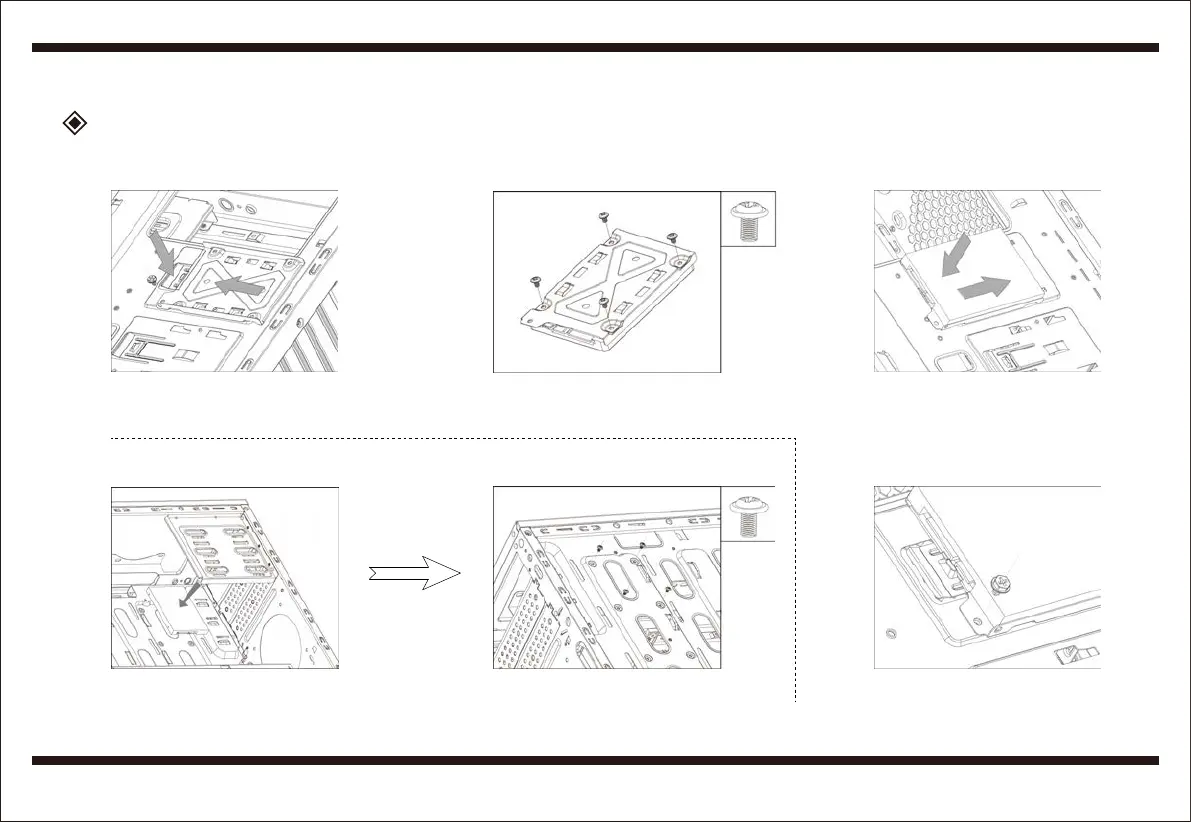 Install SSD,fix with screwsLosen screws,remove SSD bracket Insert SSD bracket into place