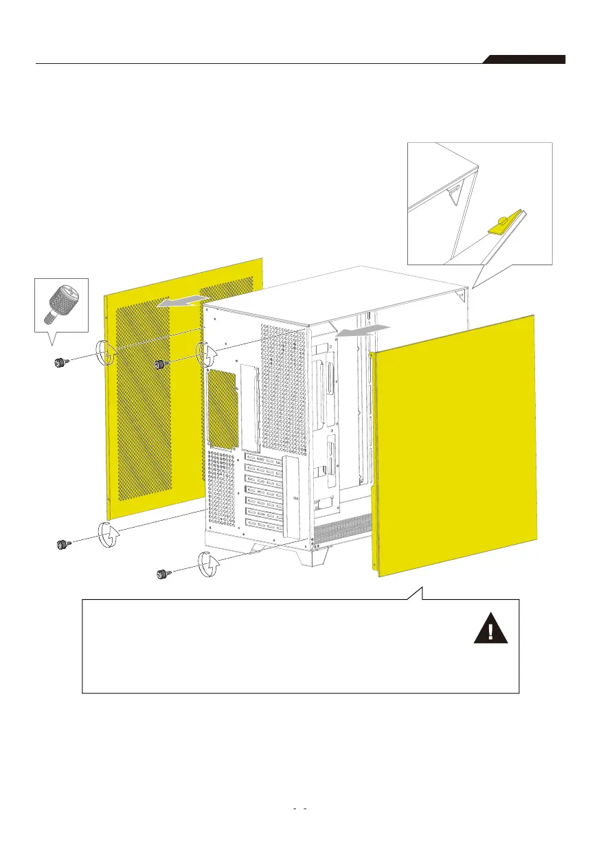 Entfernen Sie das Seitenfeld / Remova o painel lateral / Снимите боковую панель / 拆卸左右侧板