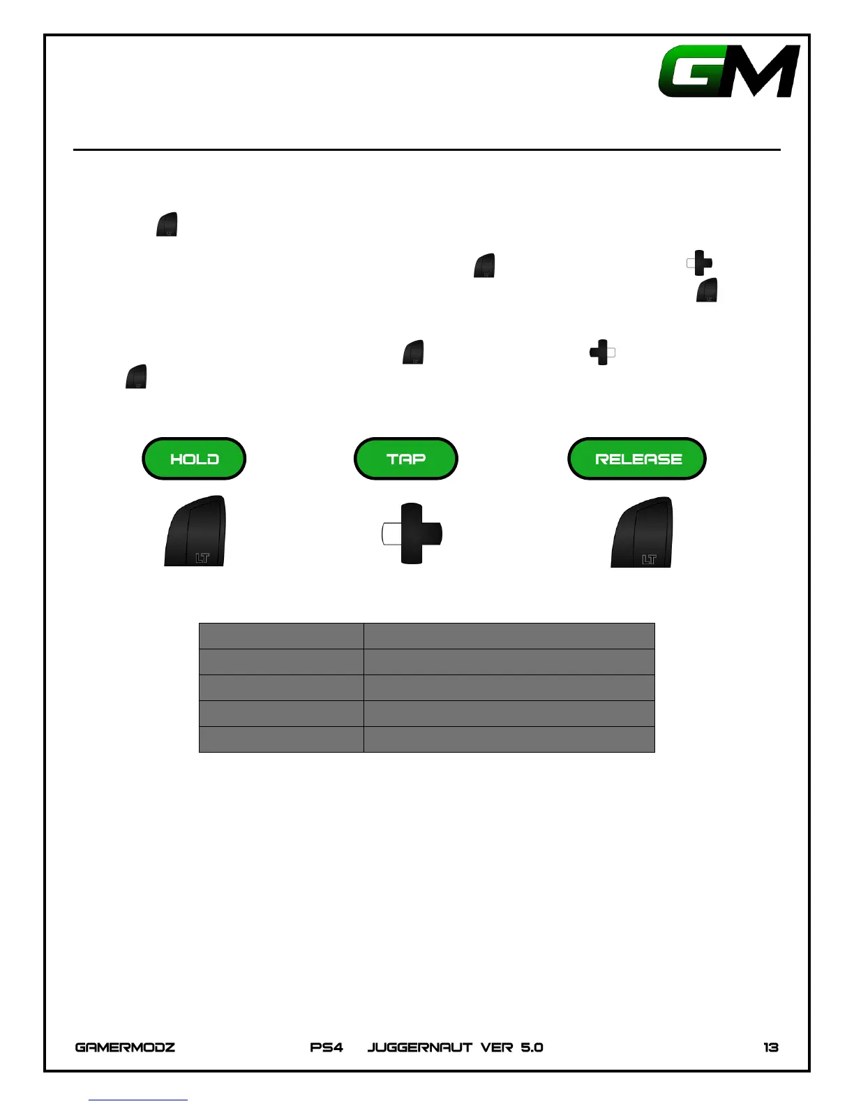 number of times corresponding the Mode you would like to select. Then Release the Left Trigger . The