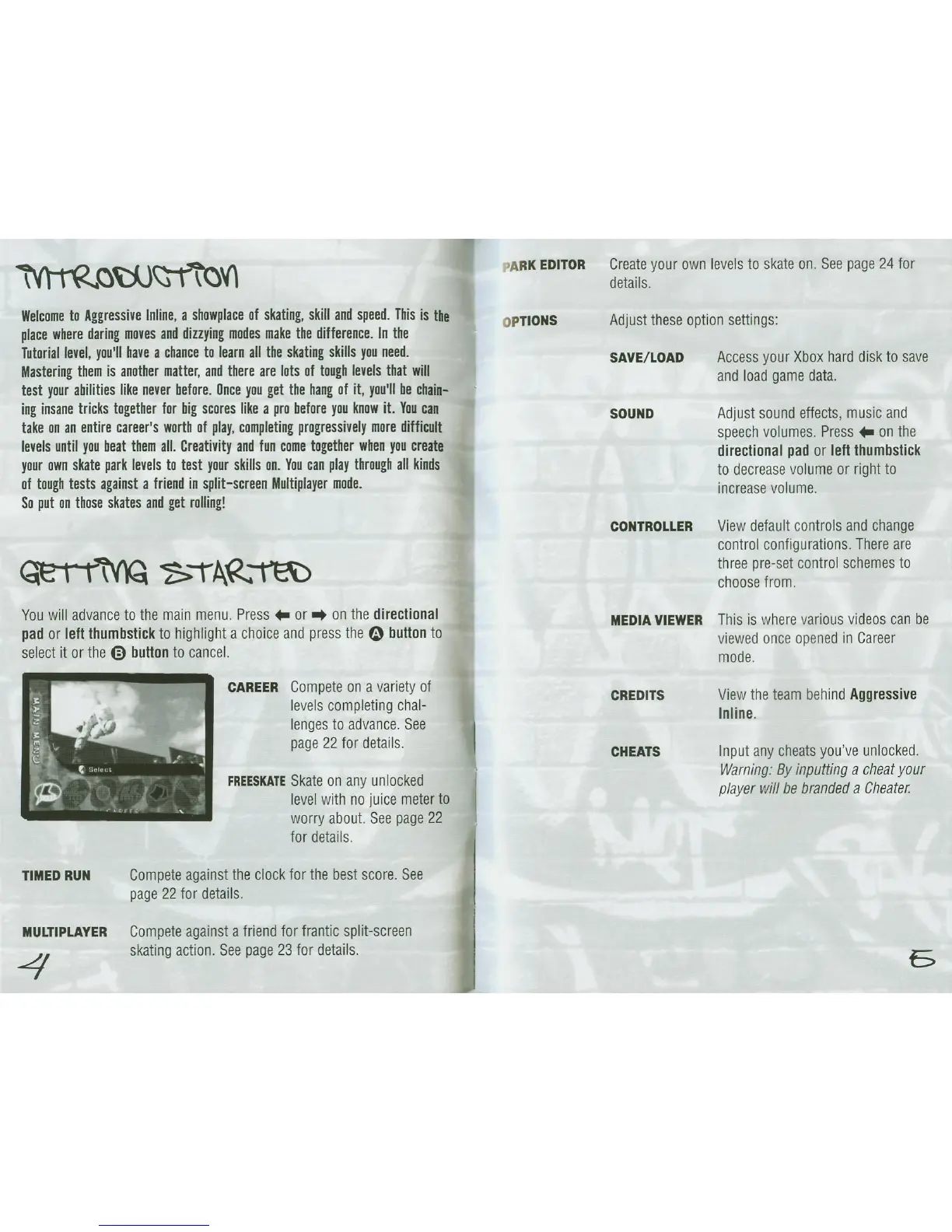 GAMES MICROSOFT XBOX AGGRESSIVE INLINE - Getting Started; Introduction; Career Mode; Freeskate Mode