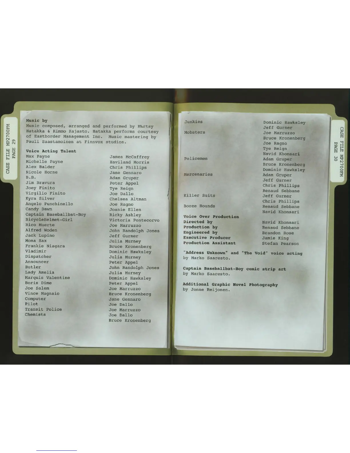 GAMES MICROSOFT XBOX MAX PAYNE - Music and Voice Talent Credits