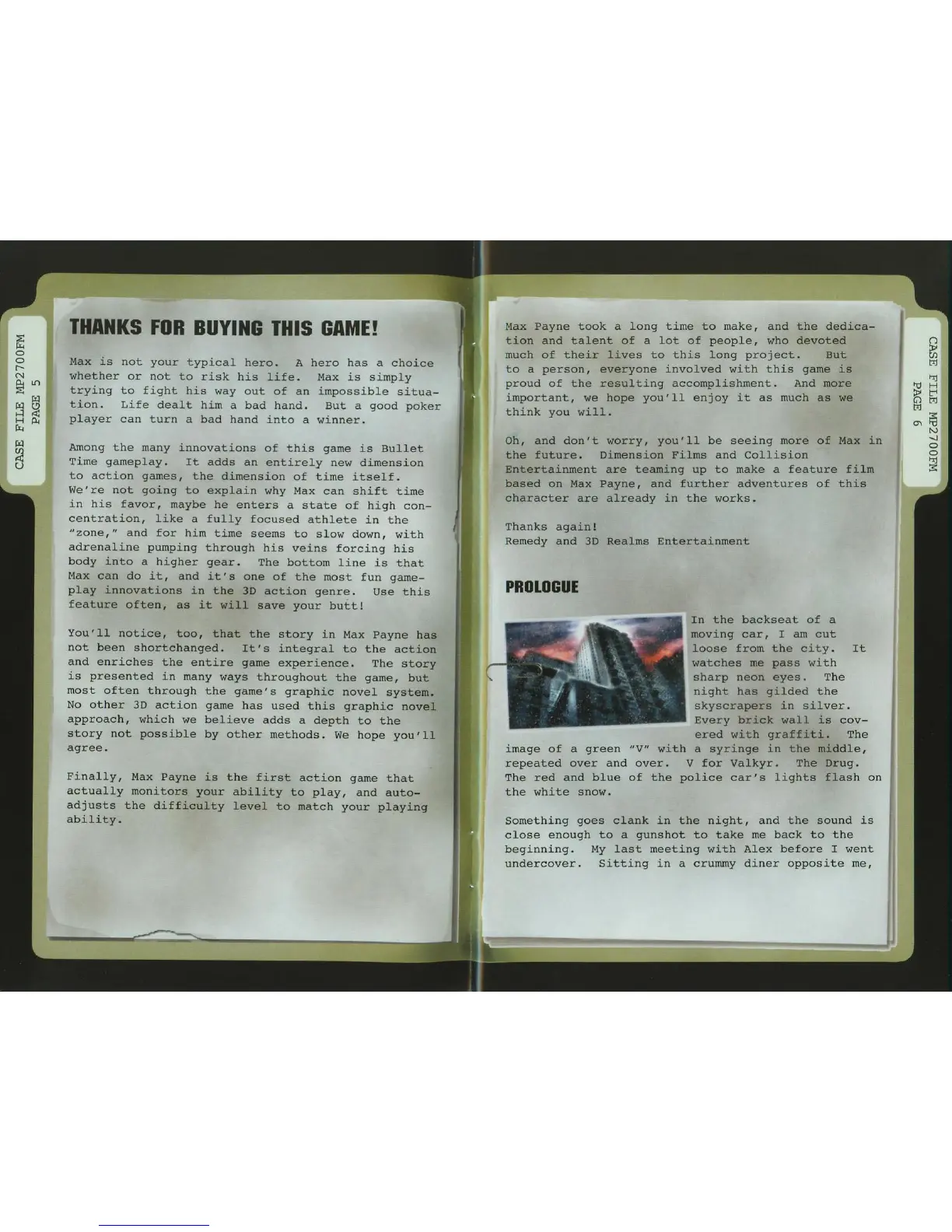 GAMES MICROSOFT XBOX MAX PAYNE - Game Introduction; Welcome Message; Prologue Narrative