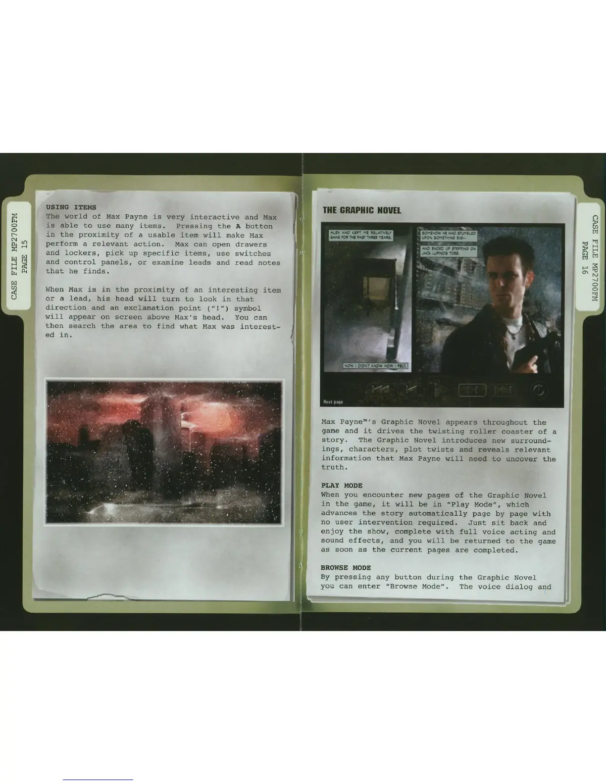 GAMES MICROSOFT XBOX MAX PAYNE - In-Game Interaction and Story; Item Interaction and Discovery; The Graphic Novel System; Graphic Novel Viewing Modes