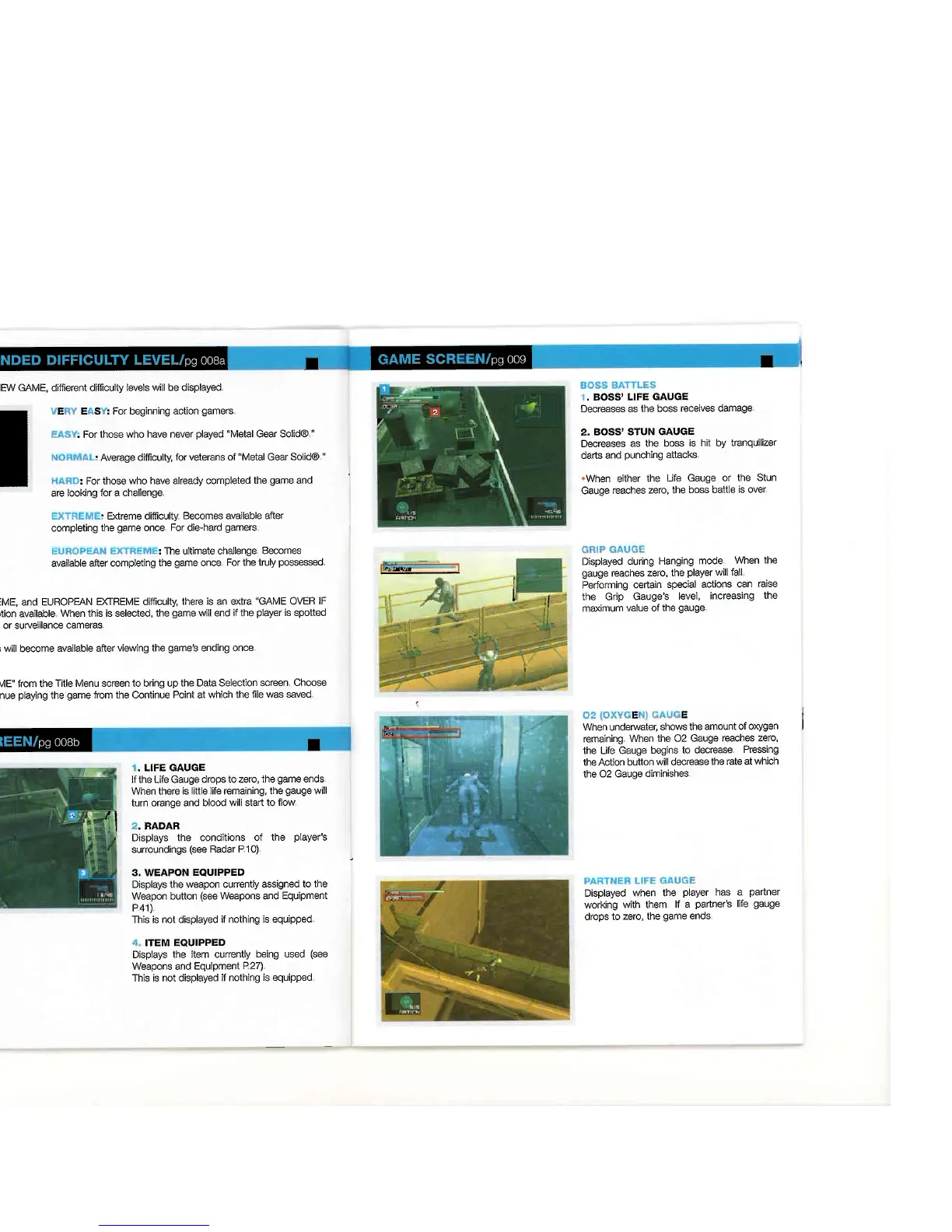 GAMES MICROSOFT XBOX METAL GEAR SOLID 2-SUBSTANCE - Difficulty Levels and Game Screen; Difficulty Levels and Modes; Game Screen Elements