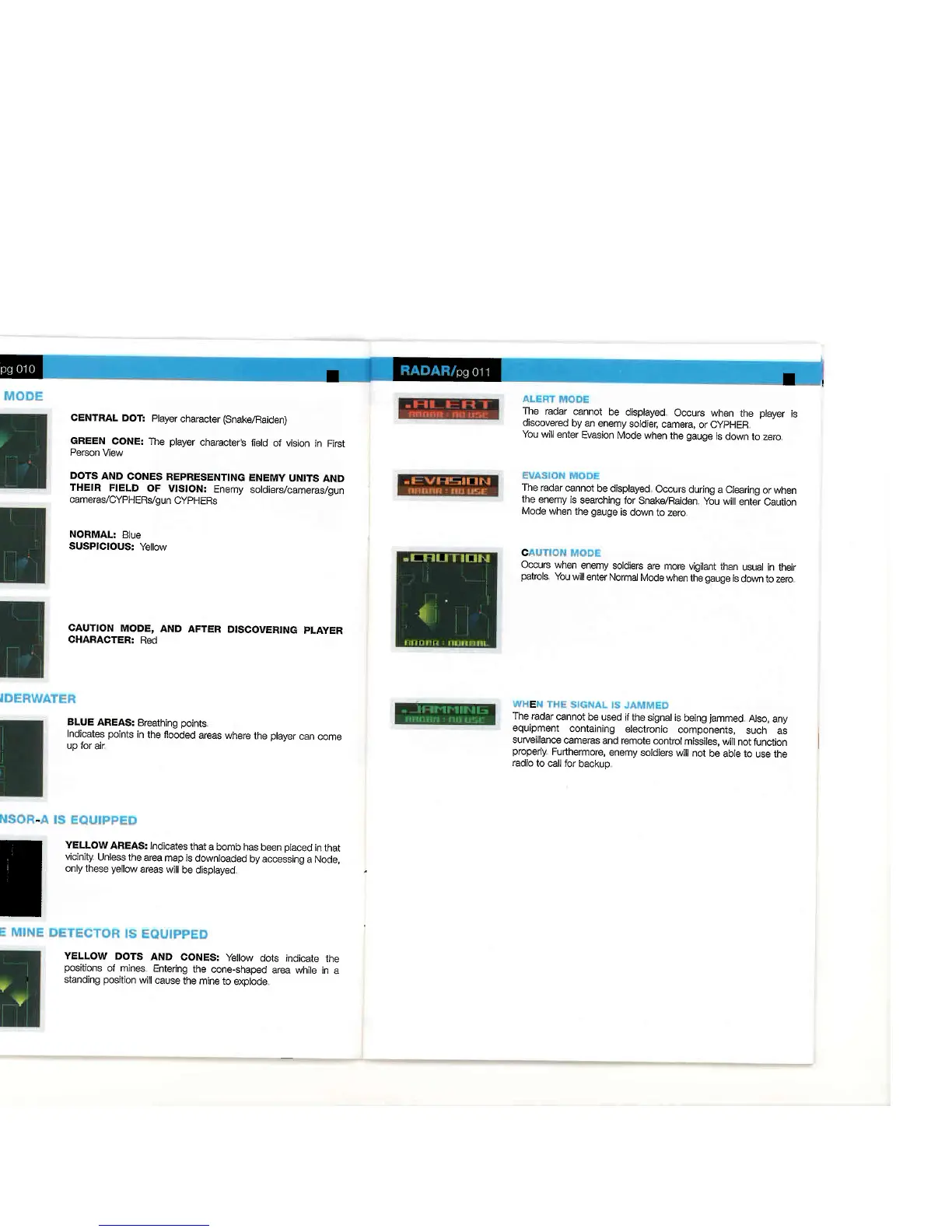 GAMES MICROSOFT XBOX METAL GEAR SOLID 2-SUBSTANCE - Radar System Guide; Radar Modes and States