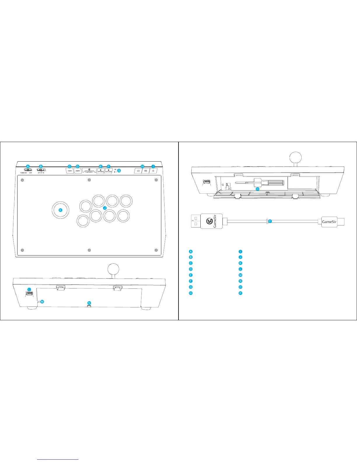 GameSir C2 - Device Layout Overview; Top Panel Controls; Side and Bottom Features; Component Identification