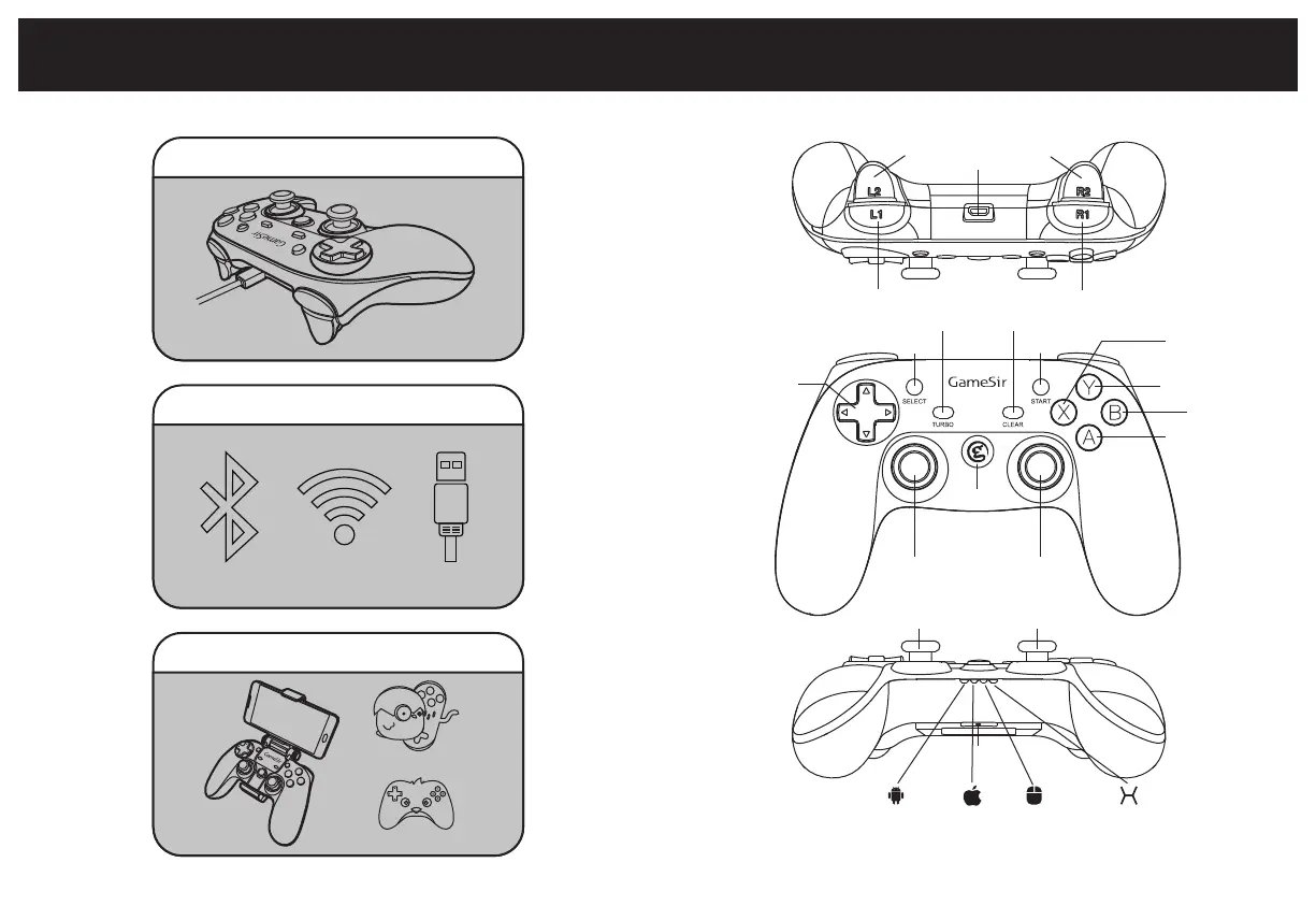 GameSir G3S - Product Overview; Checking and Charging Controller; Connecting Controller to Devices; Download Supported Games