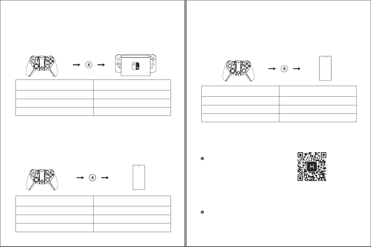 注:若手柄切换其他模式,需将手柄关机后重新使用组合键开机与安卓手机进行配对,打开手机蓝牙,搜索到