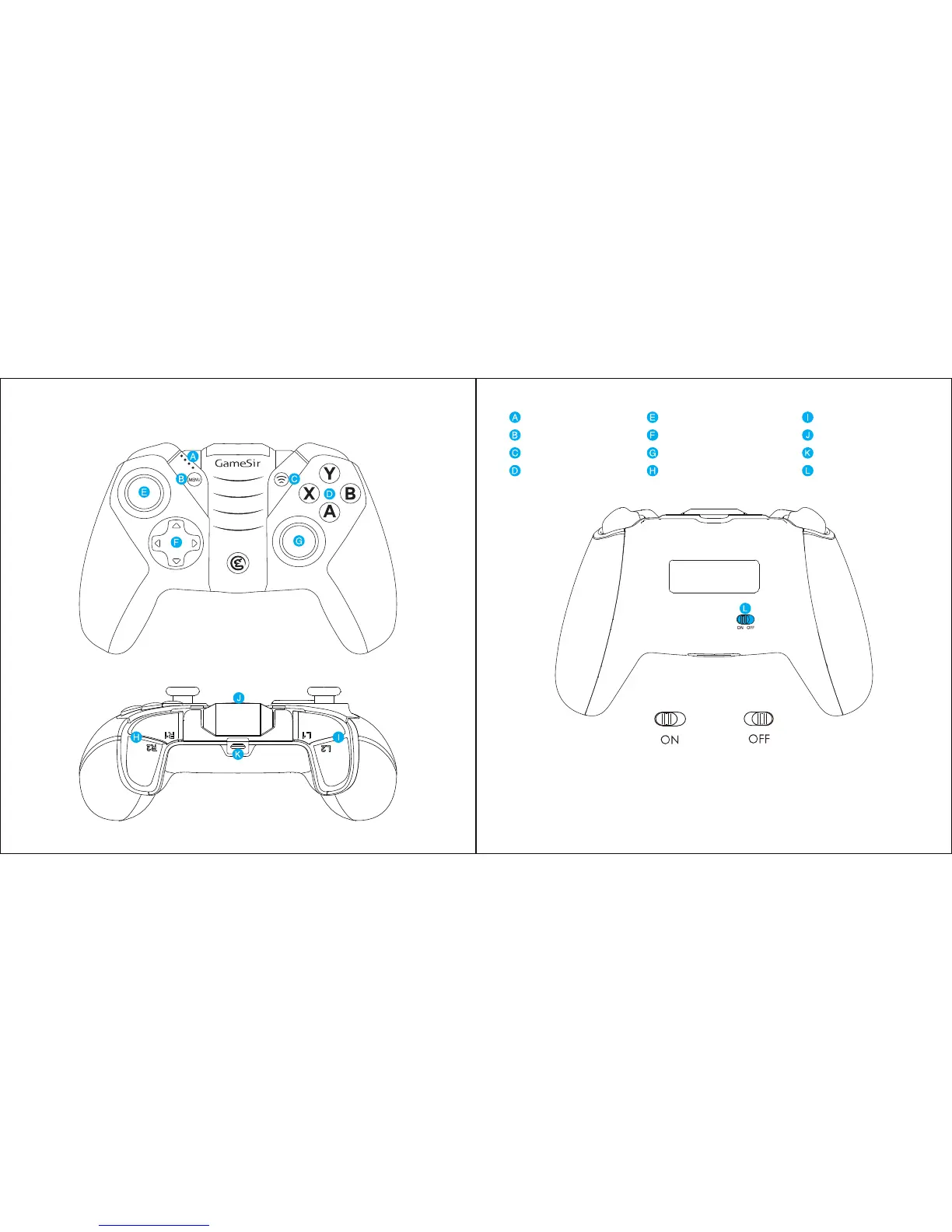 GameSir M2 - DEVICE LAYOUT; CONTROLLER COMPONENTS; POWER ON;OFF SWITCH