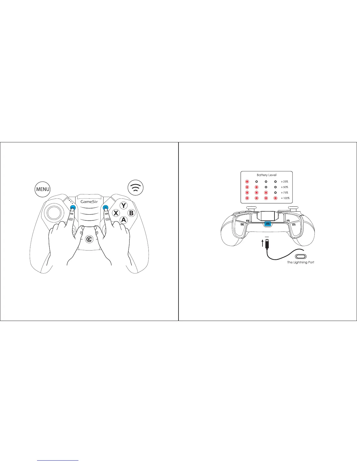 d. When GameSir M2 is fully charged, the indicator lights will stay on.