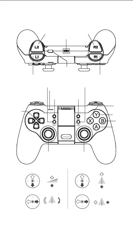 1) Short press the button to turn on, if it starts successfully, the ABXY