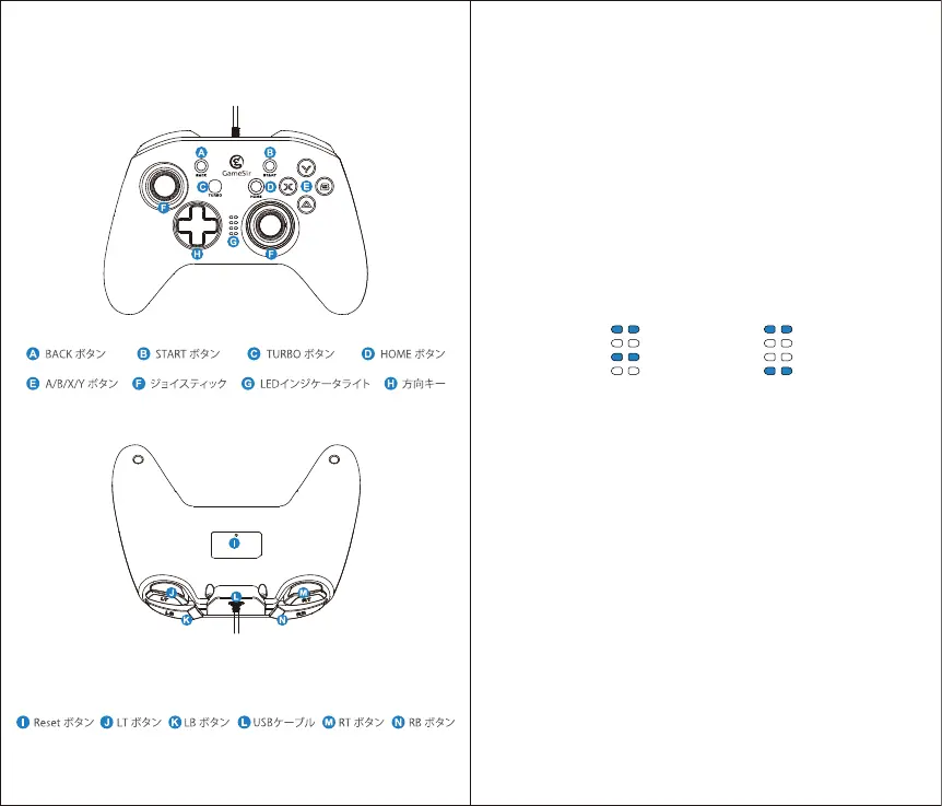 を切り替えることができます。LED1+LED4インジケータライトが点灯する場合はXinput