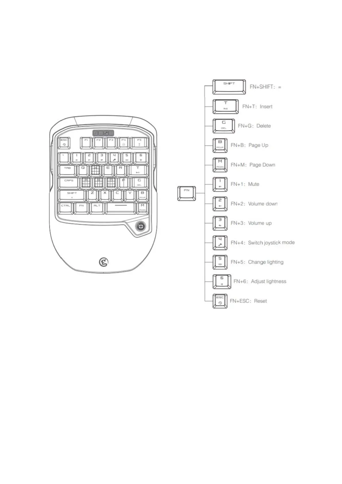 lights up ,so the joystick mode is switched to WASD function. Press FN+4 keys again,