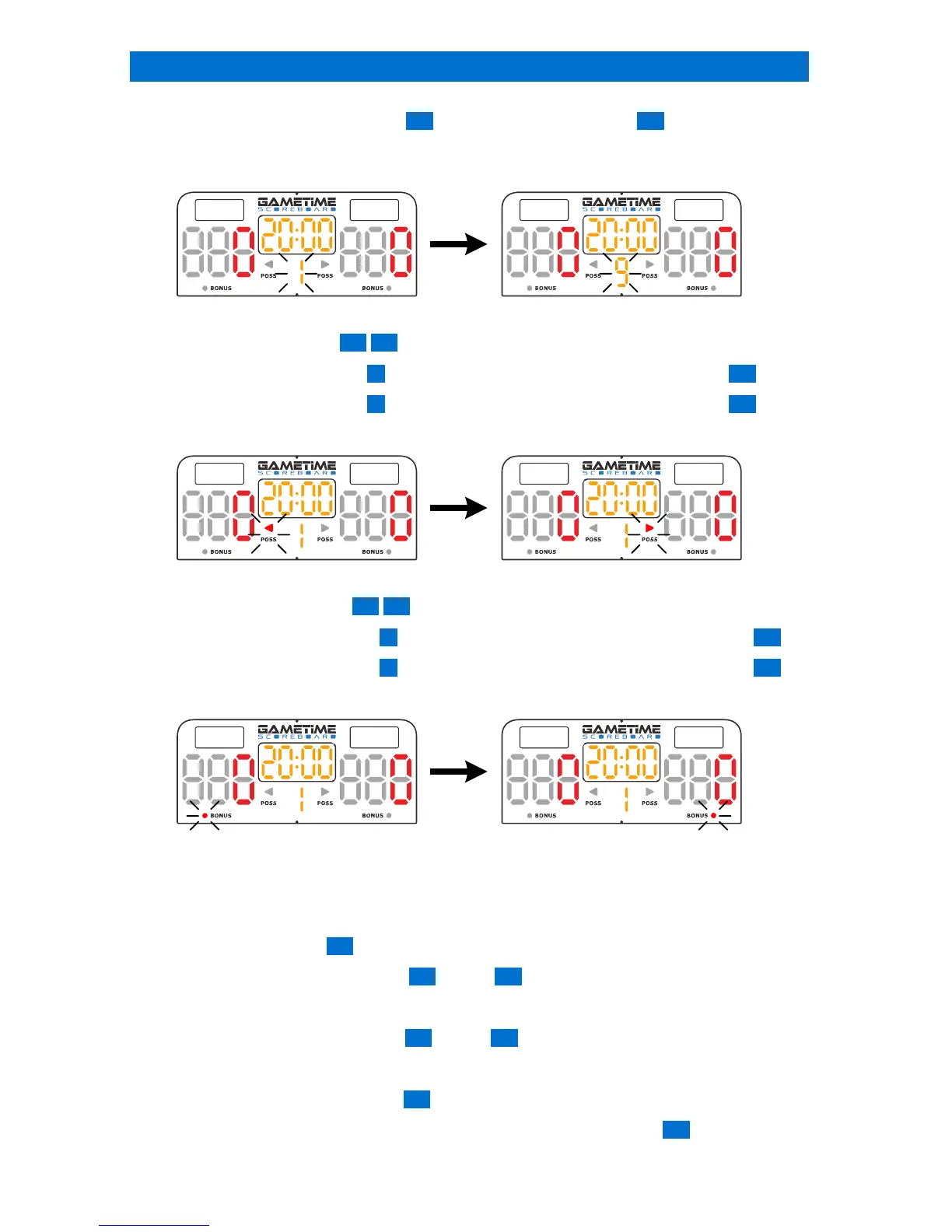 1. Press POSS BUTTON 35 41 to select the offensive team in possession of ball.