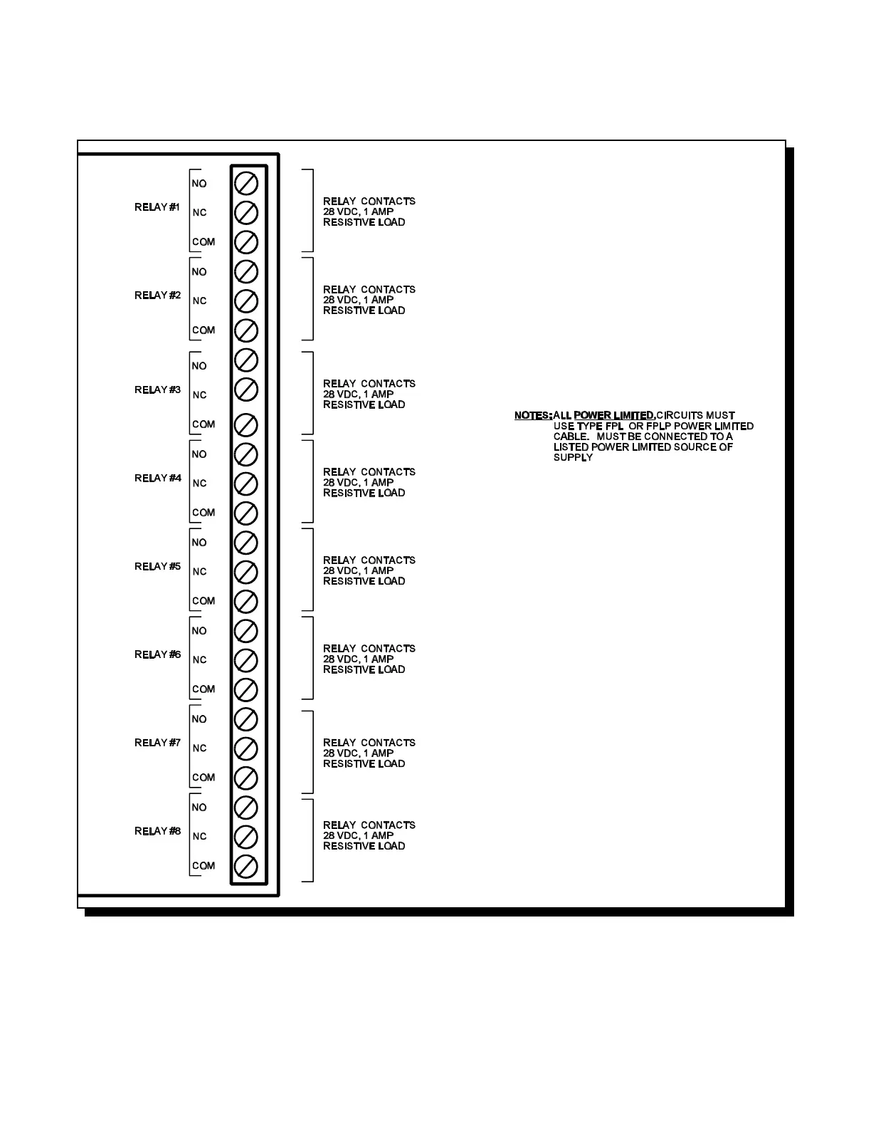 Gamewell Flex 4 - Relay Module (RY4 or RY8) Terminal Connections