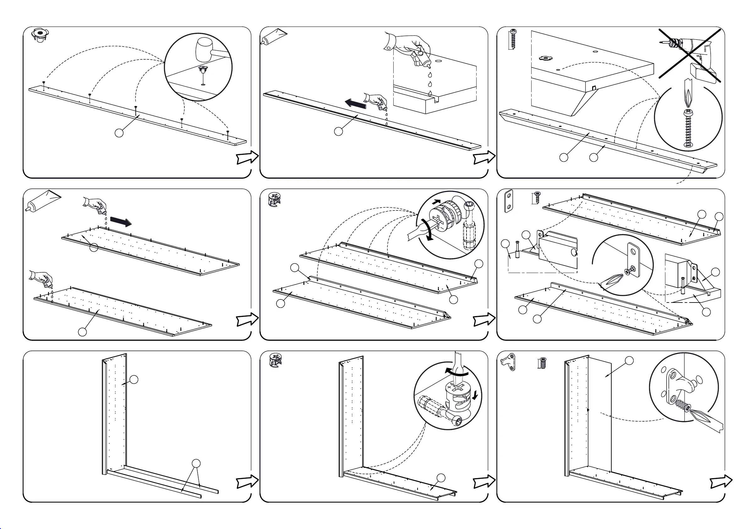 Gami 259 - Main Wardrobe Frame Assembly; Attaching Side and Base Panels; Connecting Internal Shelving Supports