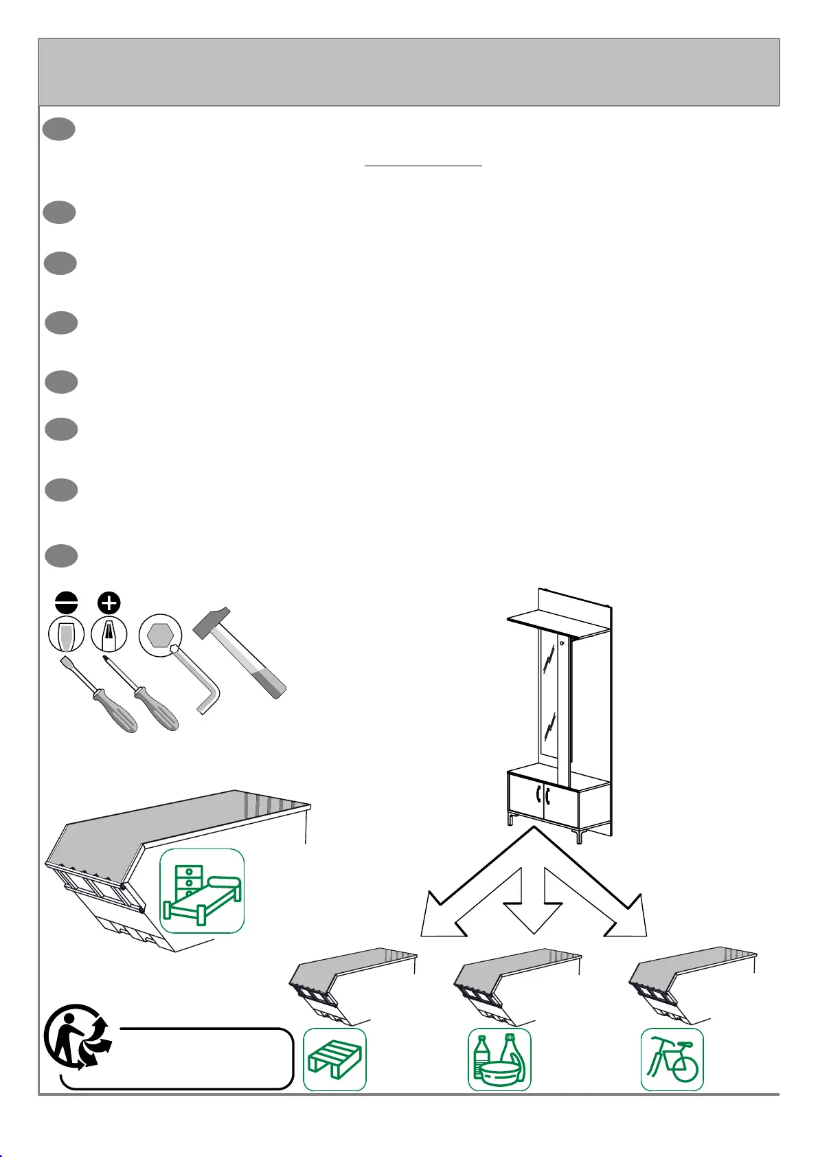 Al momento dell’eliminazione del vostro mobile usato, i componenti in legno, in plastica ed in metallo possono