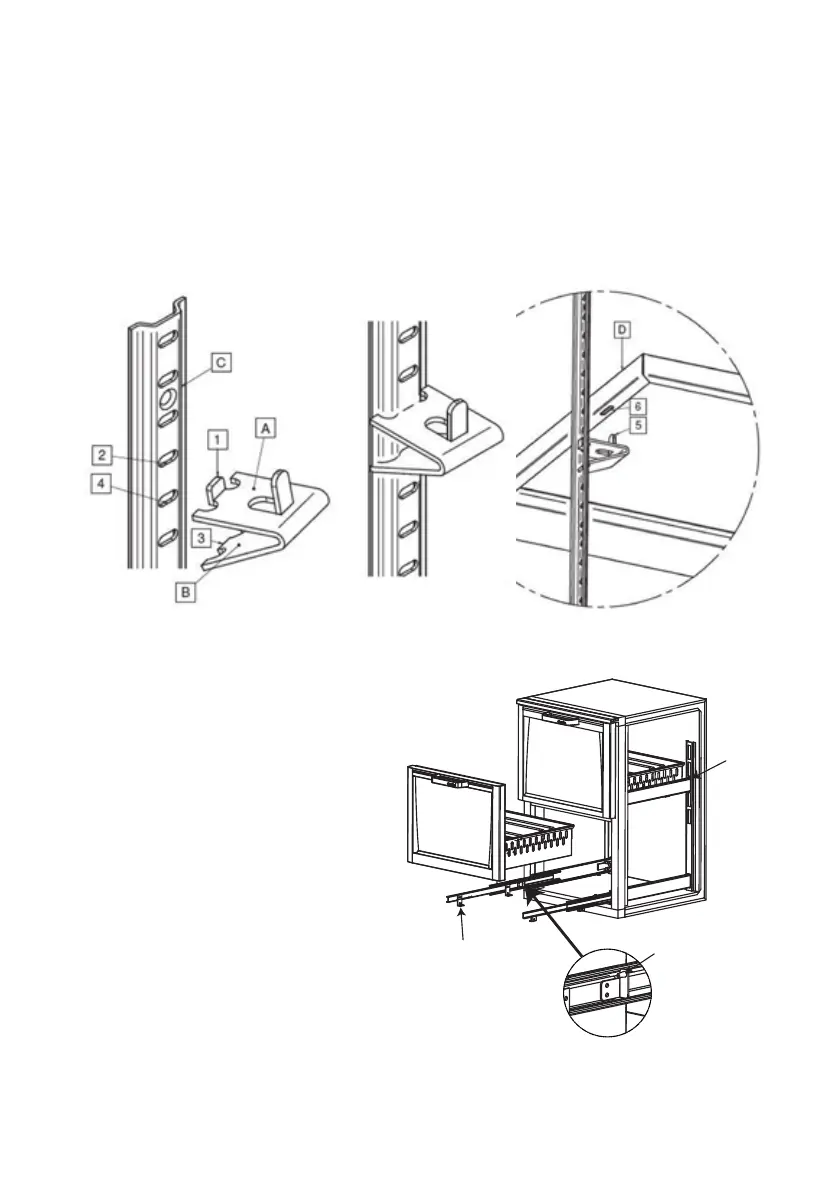 1 Haken Sie die Halter (1) in die Öffnungen (2) der Schienen (C).