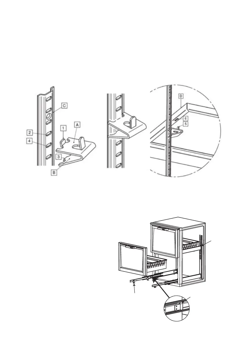 5 Place the storage rack (D) sliding the pins (5) in the openings (6).