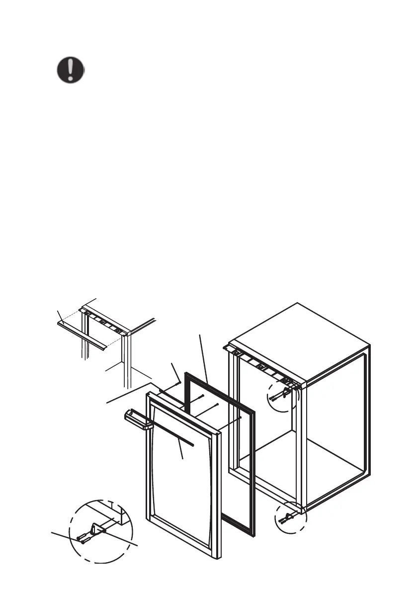 9 Remettre la porte en place et monter la charnière supérieure à l’aide des 2 vis (la charnière que vous avez