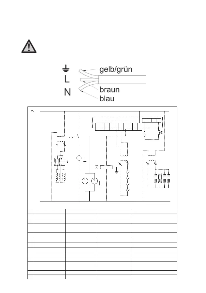 Die Schnur muss an einen geprüften Stecker angeschlossen werden. Der Stecker muss den