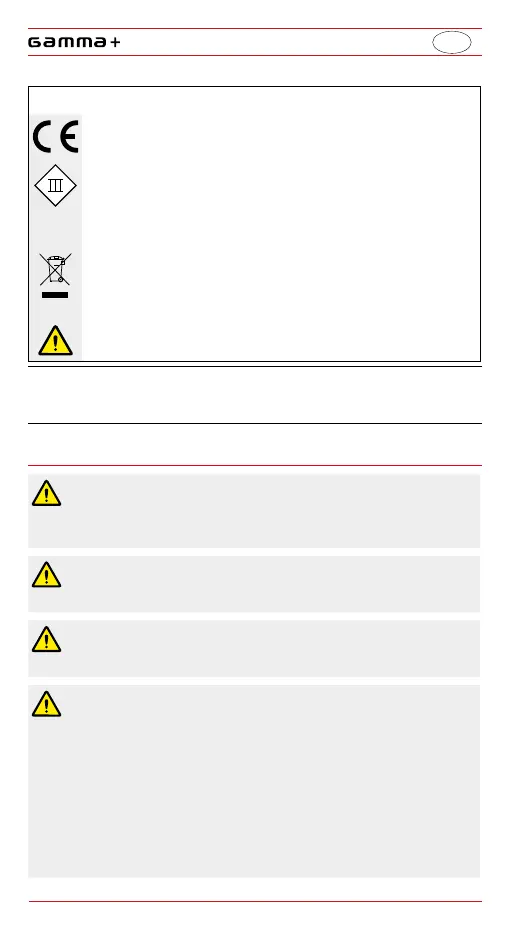 por un transformador SELV. Los aparatos de Clase III no deben estar provistos de