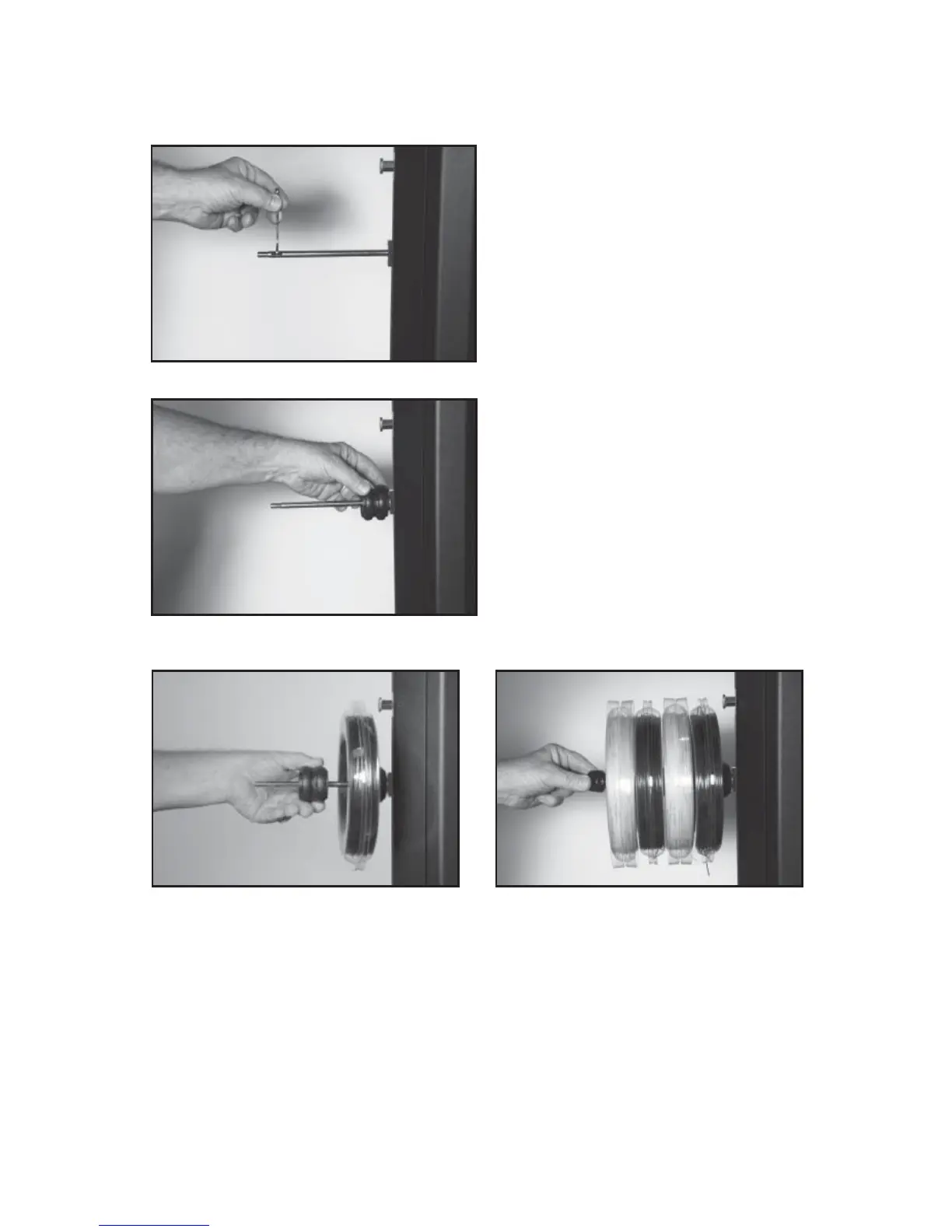 After the fi rst reel is placed onto the rod, place two spacers between each reel to provide
