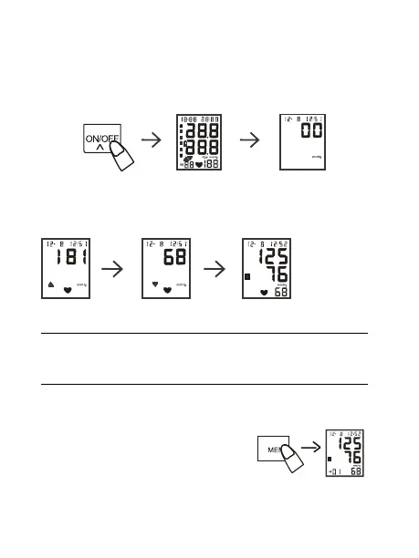 2. Манжета автоматически накачается. Инидикатор «♥» будет мигать на