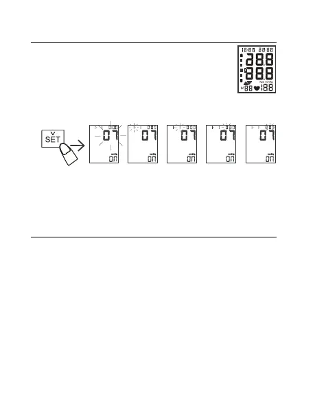 1. Pieskarieties pogai «SET» un paturiet līdz uz displeja, parādās