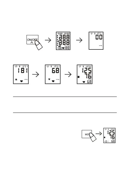 2. Tiks veikta automātiska manšetes piepumpēšana. Ja mērījumu veikšanas