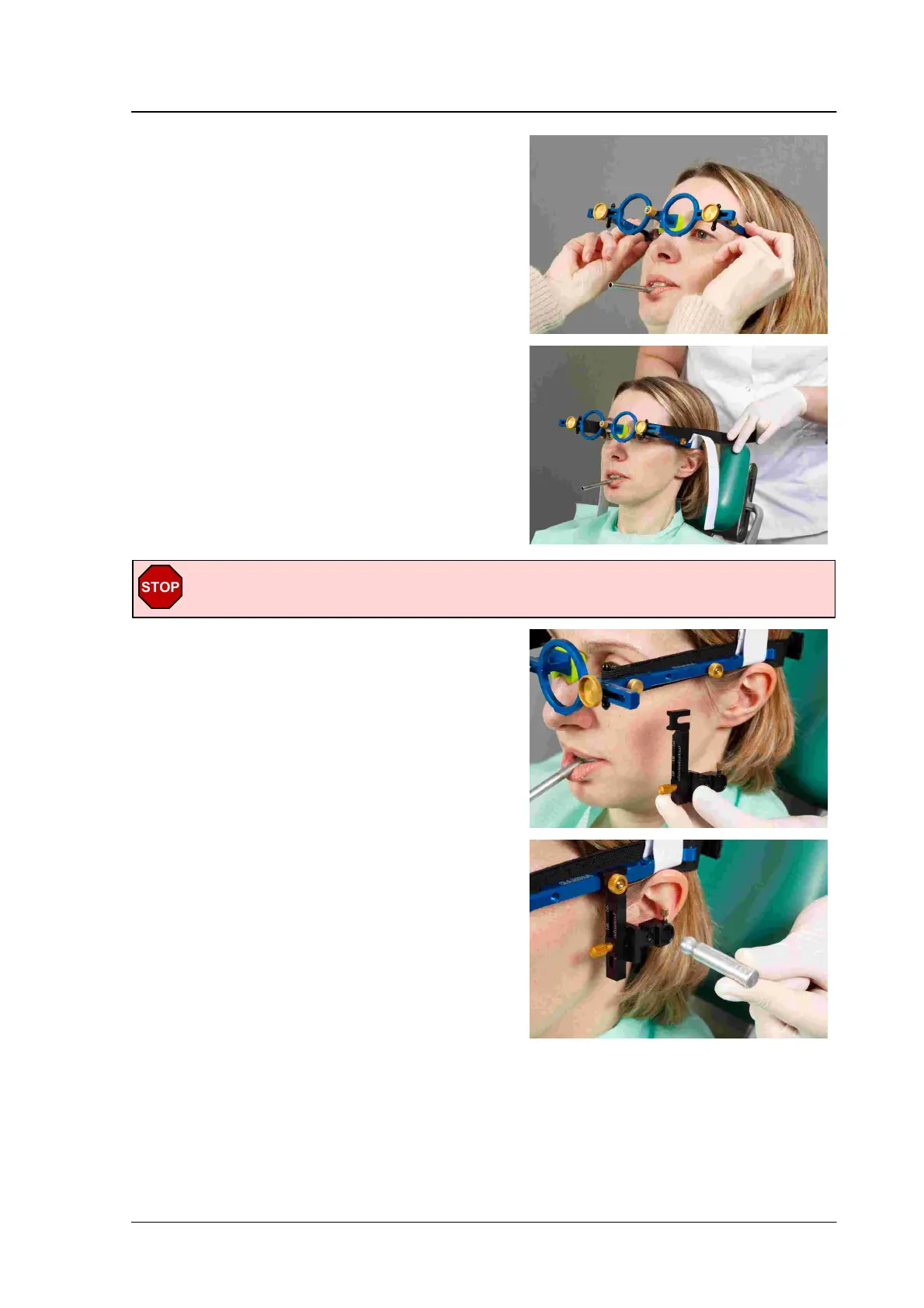 Pay attention that the side arms lie above the ears. The face bow must not be pulled down-