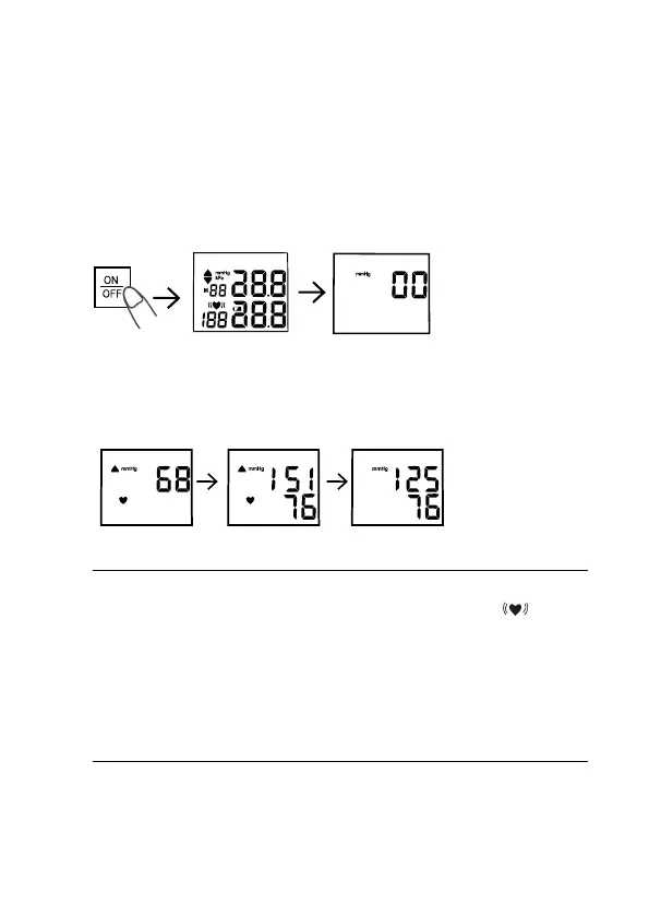 cuff. In the display, the increasing cuff pressure is continually displayed.