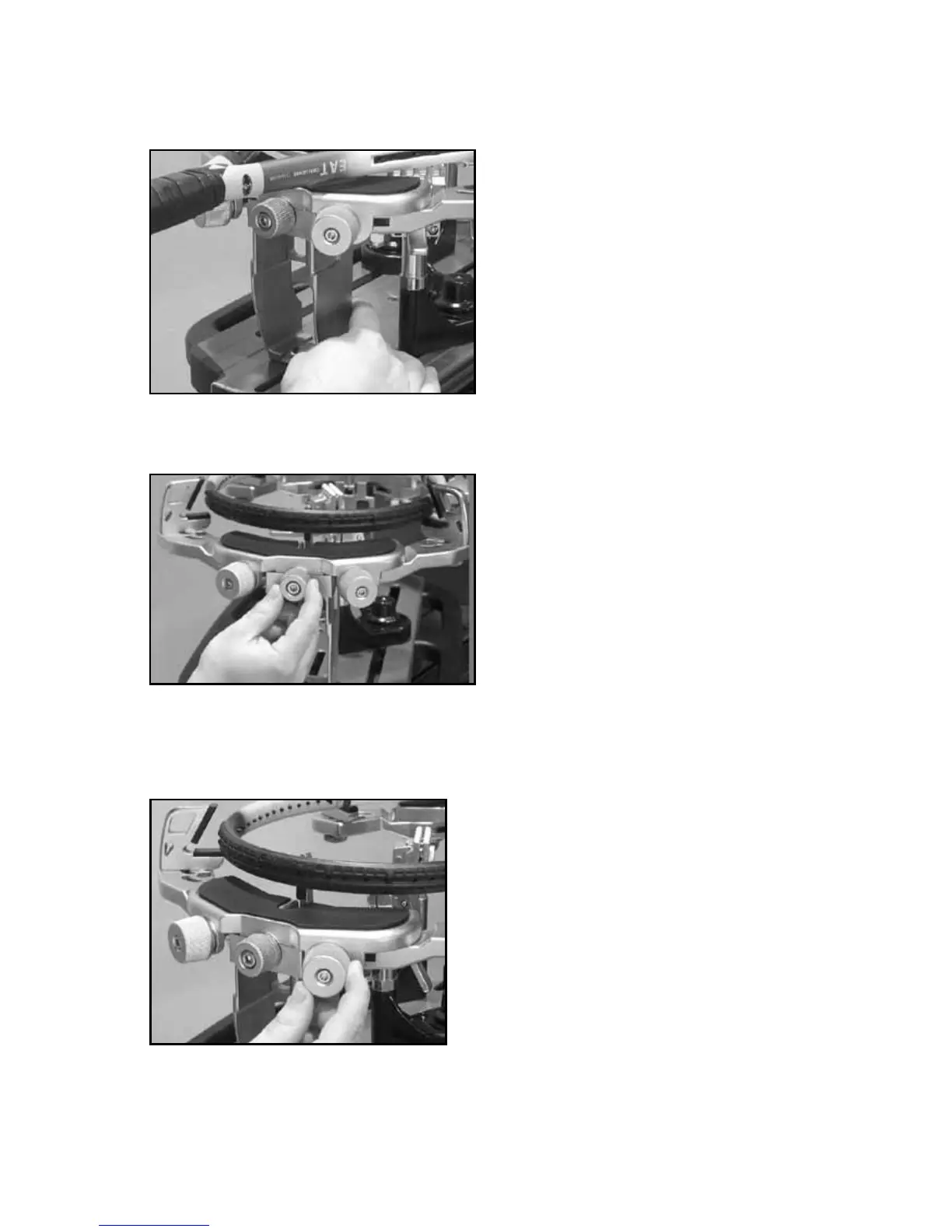 Caution: To avoid racquet damage, the center posts should not contact the racquet prior to