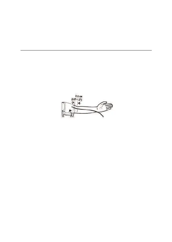 augšu. Artērijas iezīmei pie manšetes ir jābūt novietotai 2 - 3 cm augs-