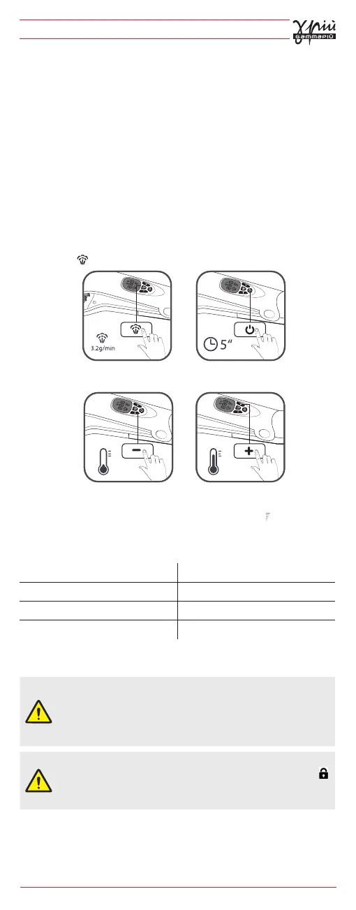 Estão disponíveis 5 níveis de temperatura: 150-170-190-210-230°C.