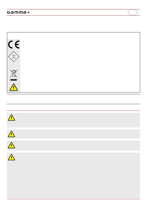 Ne uporabljajte v bližini plina ali drugih vnetljivih materialov (bencin, sprej, itd.)