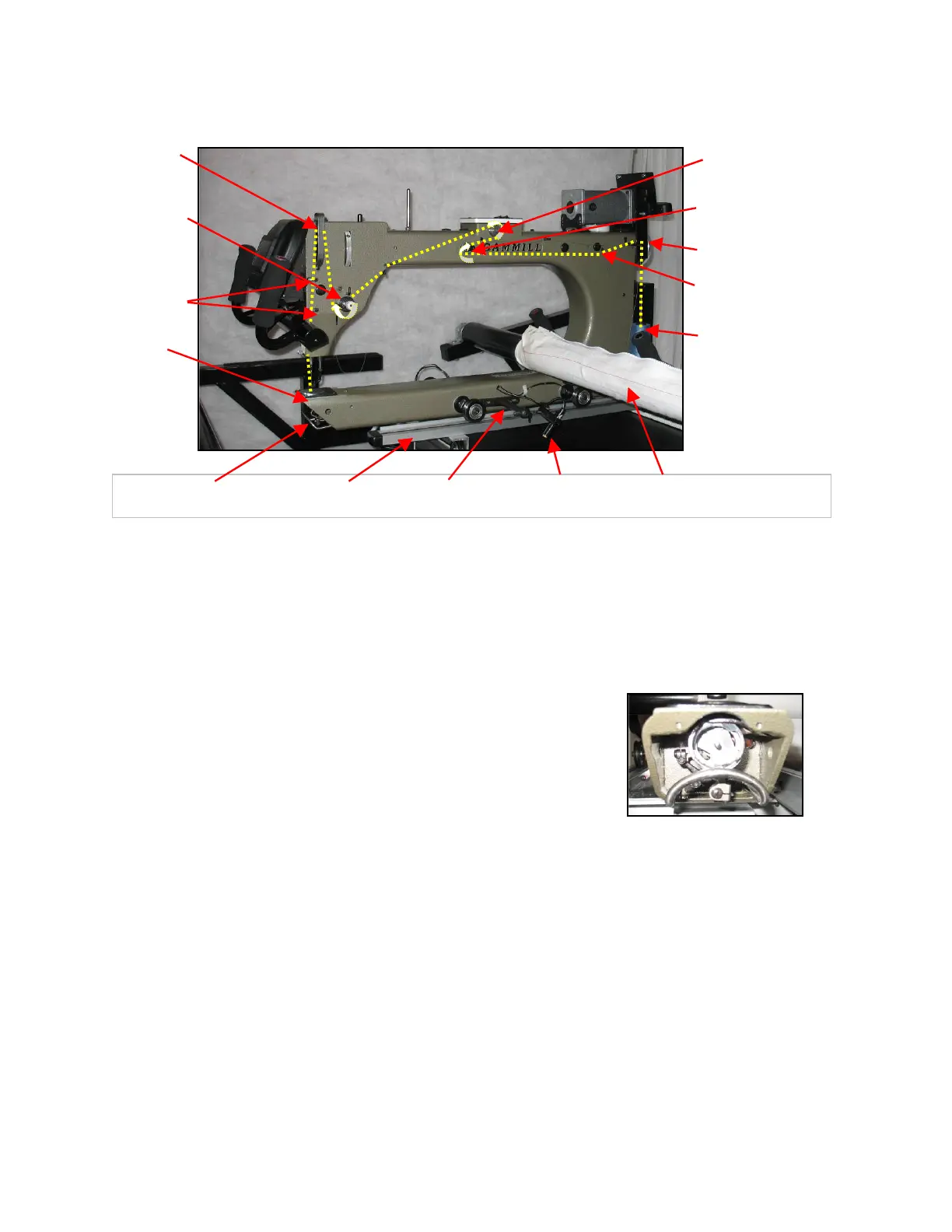 spring. From there it goes to the take up lever, through more guides and finally through the eye of the needle.