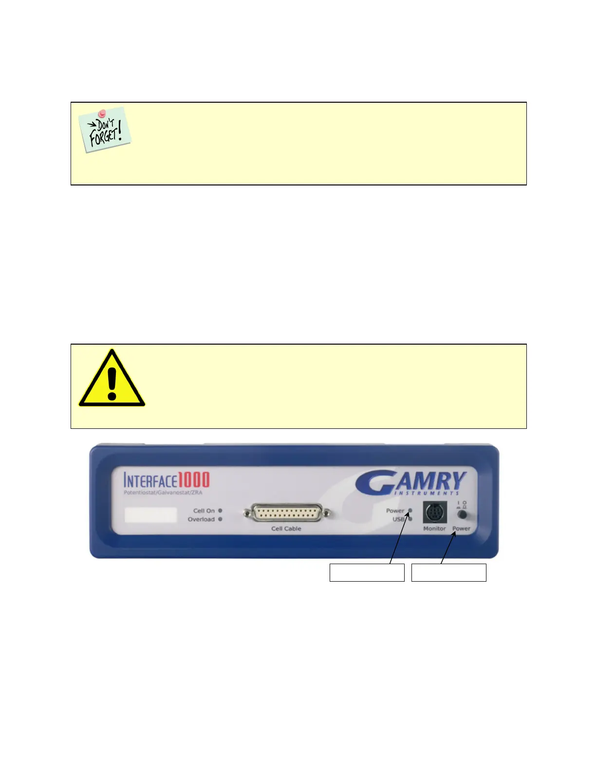 When the Interface 1000 is first turned on, the Power LED glows steadily for a second or two, blinks three