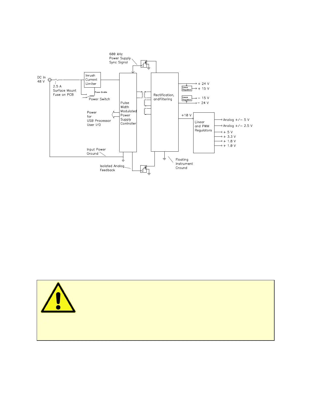 The 600 kHz power supply sync signal is derived from the same clock used to control data acquisition.