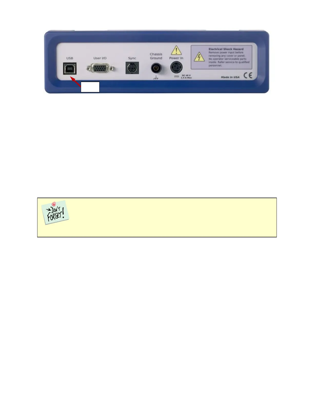 powered-up before the USB cable is plugged in. Unlike many other instrument system connections, you need