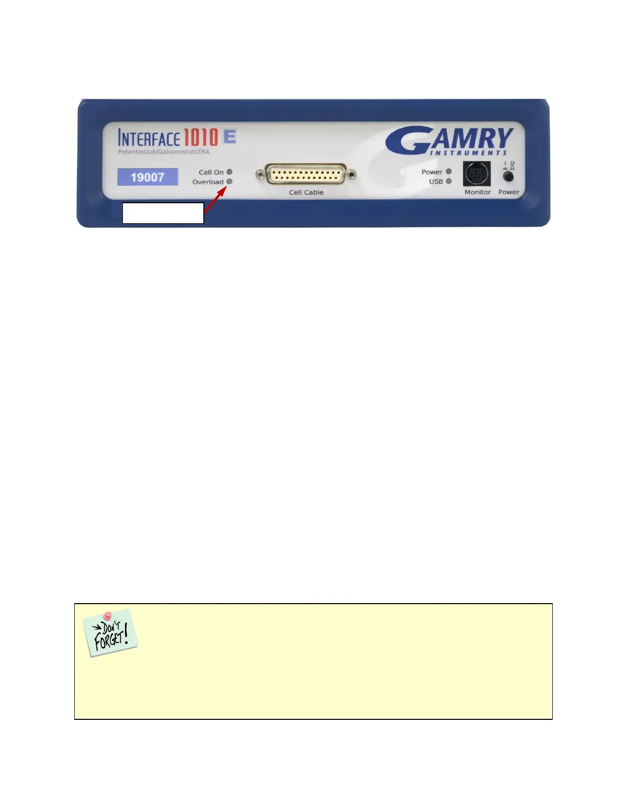 A steadily glowing Overload LED during an experiment most likely indicates a problem is occurring. Possible