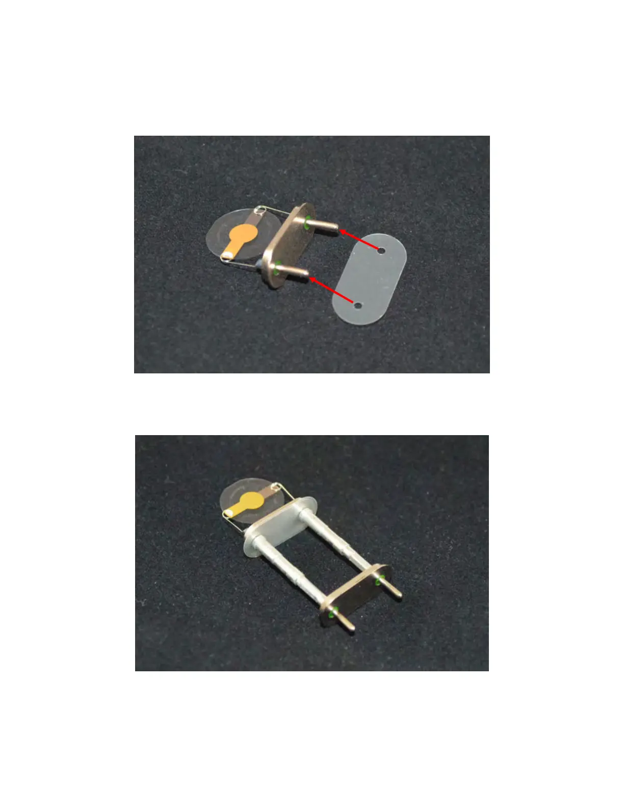 Place a clear plastic insulator on the quartz crystal and attach the adapter (see Figures 5.2 and 5.3).