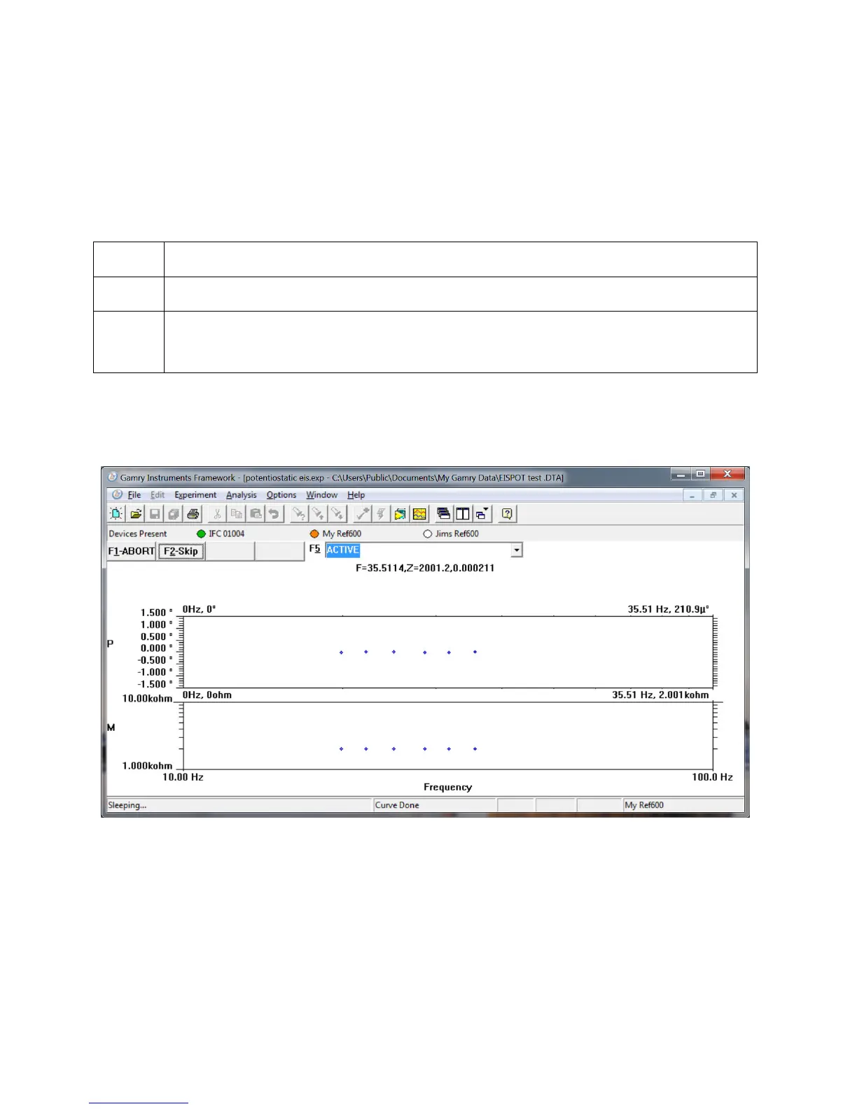 to run. The Reference 600 labeled My Ref600 has a yellow indicator because it is recording the EIS spectrum