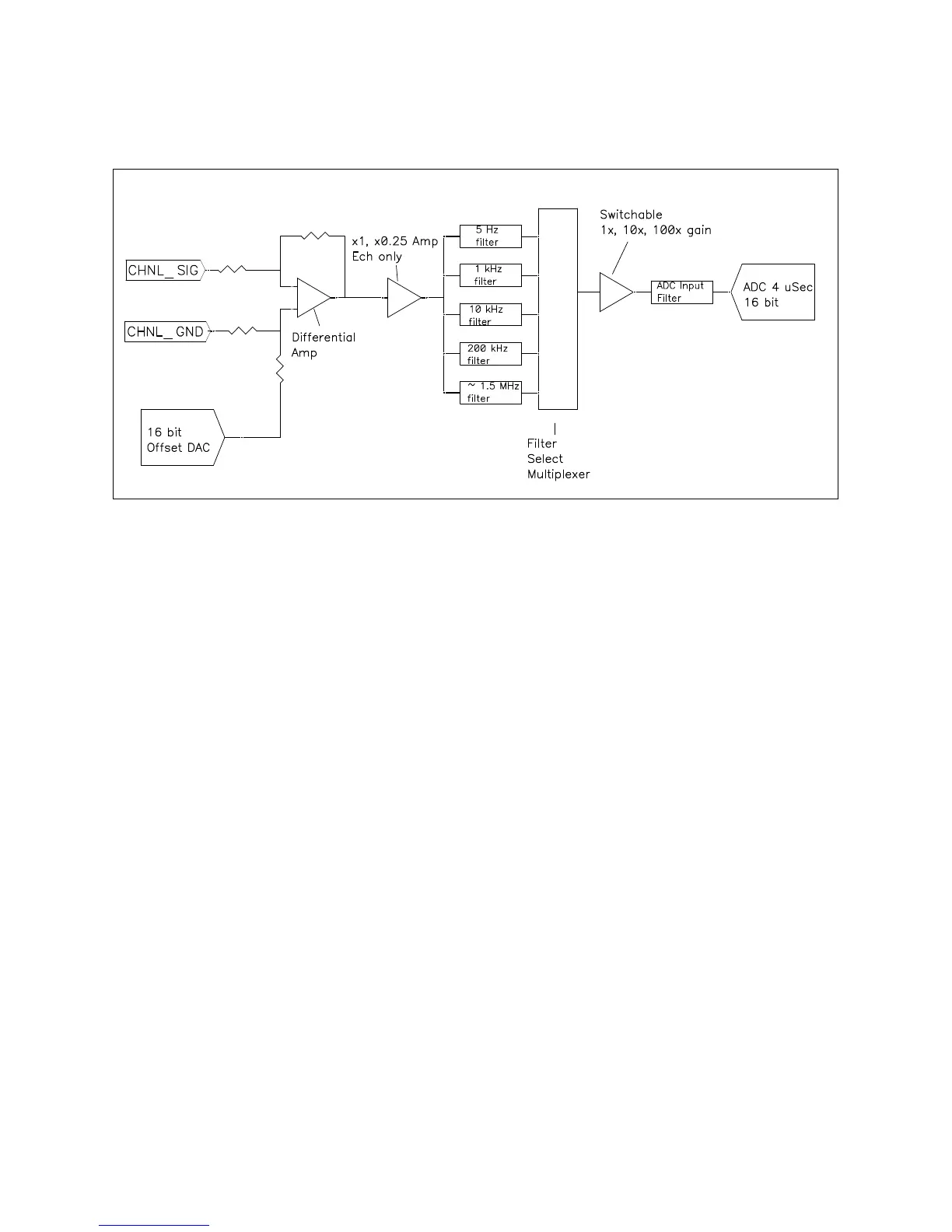 • This diagram shows one of two identical ADC channels. One channel is dedicated to measurement of