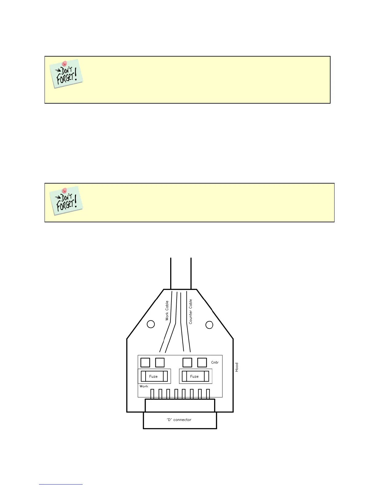 of the Counter/Working cable. A drawing of the D-connector end of a cable with the hood opened is given in
