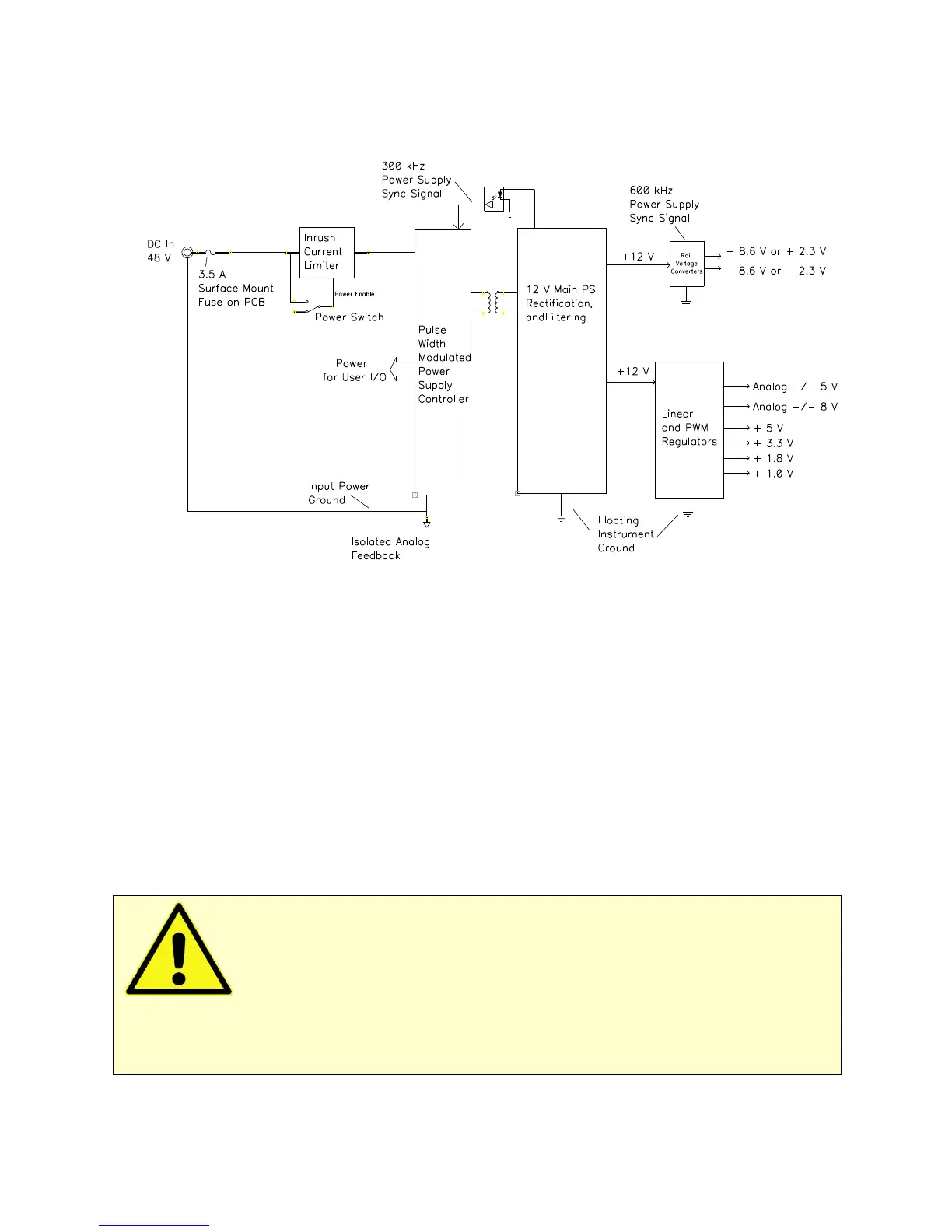 Power input voltages less than 40 V or greater than 52 V can damage the Interface 5000’s power supply.