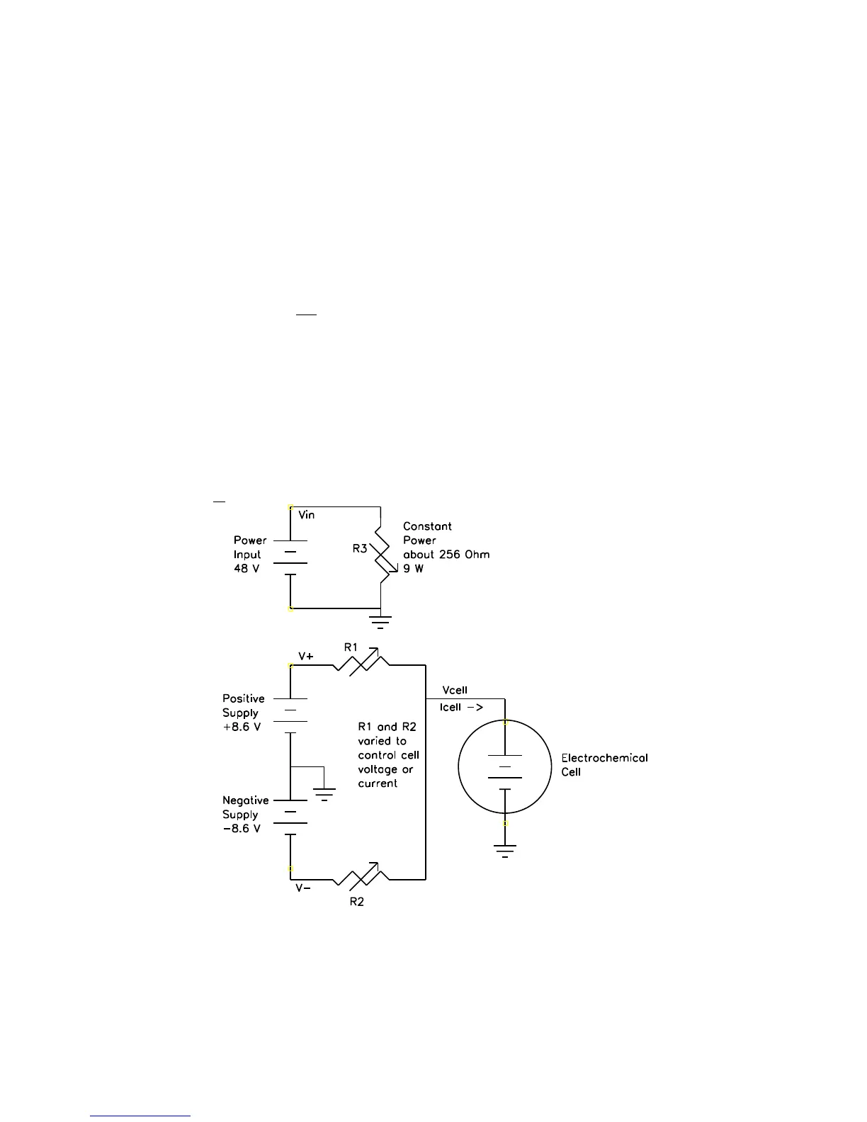 model is shown above. The electrochemical cell has a voltage Vcell that plays a role in the instrument’s power