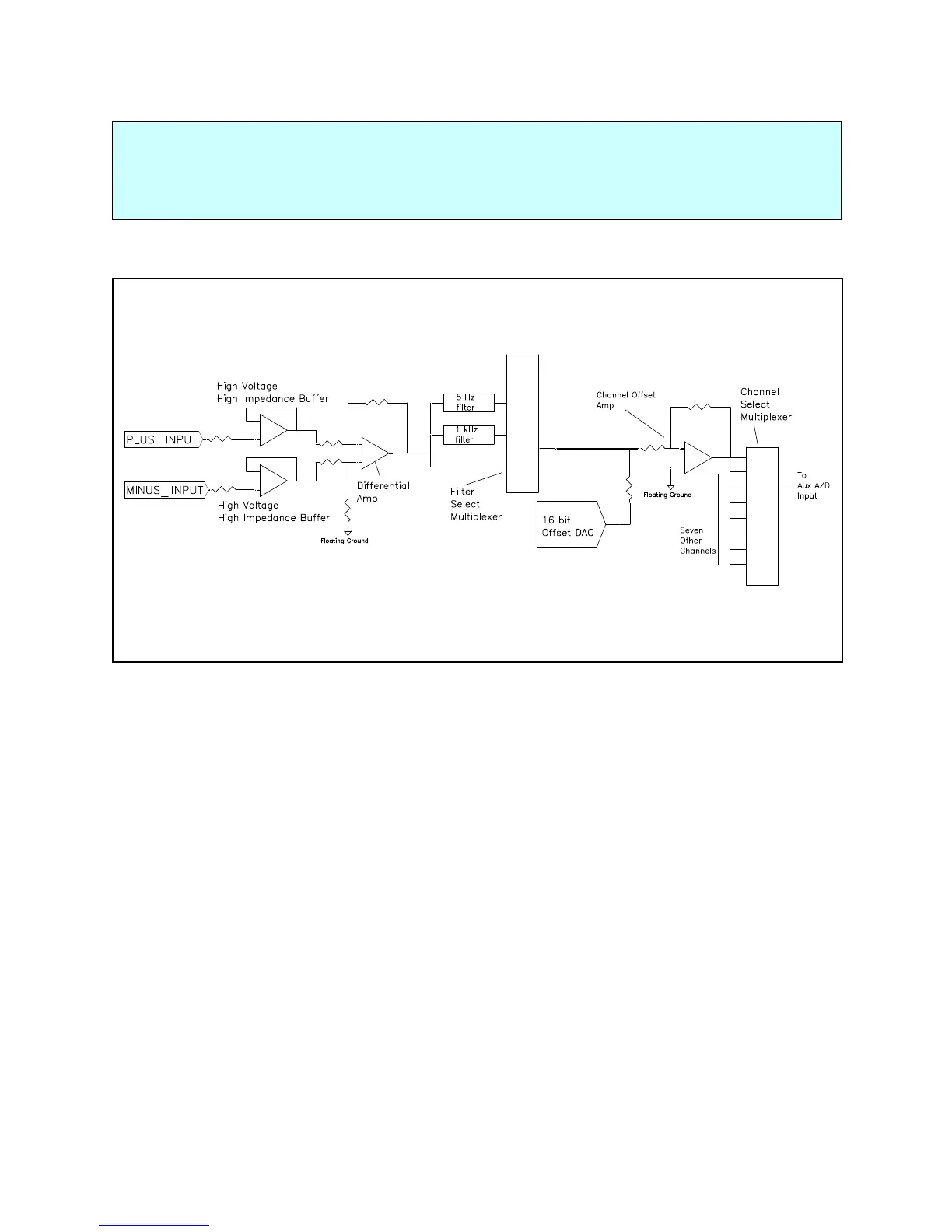 • Each channel has its own filtering. The Aux A/D Channel filter is not useful for switched inputs.