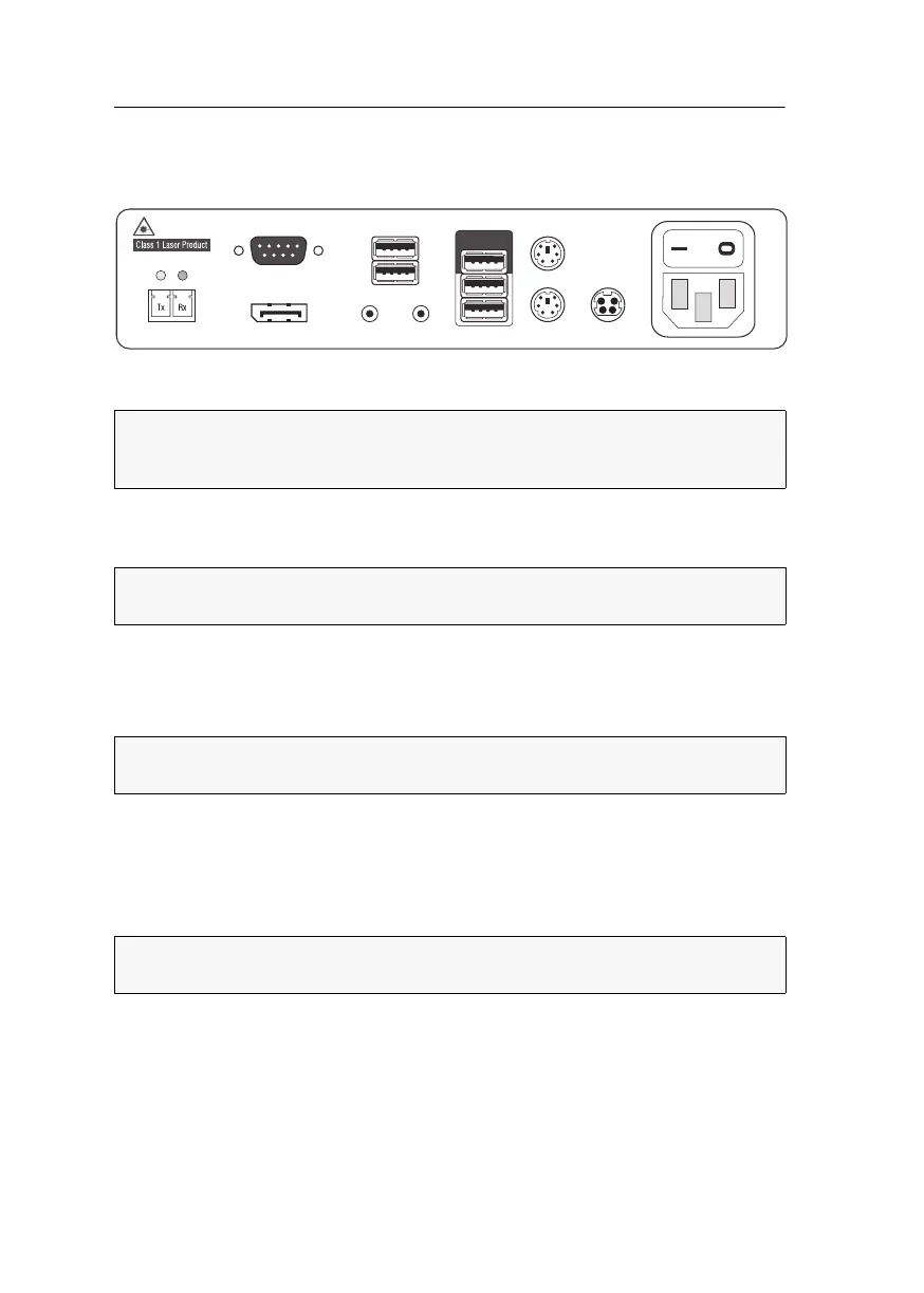 USB Devices: Connect any USB devices to these interfaces. The data stream of the